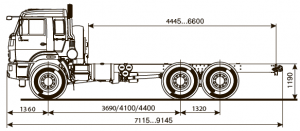 Шасси 6*6 вездеход, длина рамы мм, межосевое растояние мм, грузоподъемность 11 тонн…
